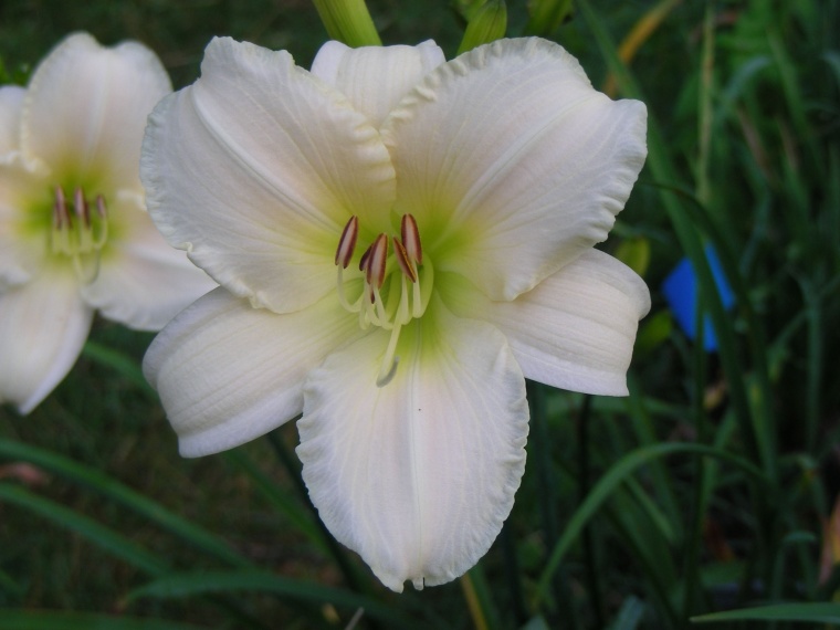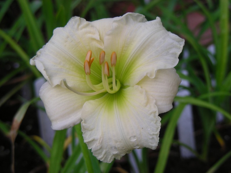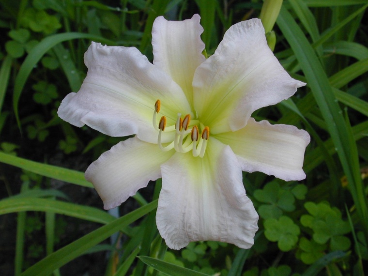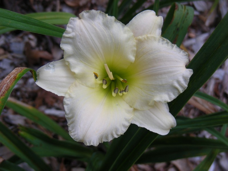 NearWhite Self (Ice Trumpets * MH0207K) A beautiful extra early, ruffled near-white with a sunfast green throat. $25 |