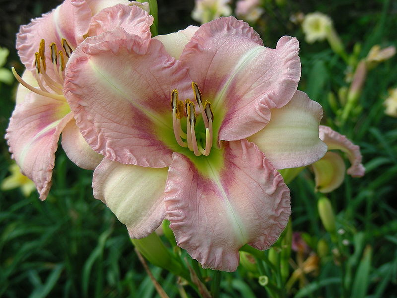 Pink with rose eye. Northern Continuous Rebloom. A pretty pink rebloomer with great green throat. Blooms until frost. $15 |