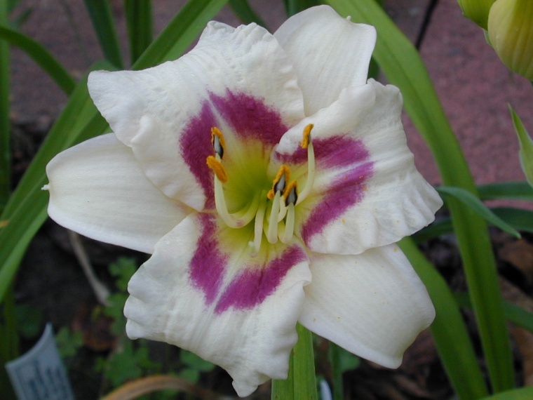 Kanai Sensei is named for Mike's Aikido and Iaido teacher for 20 years. It always opens to a perfect little bagel with a peculiarly difficult to describe color. It has a tiny green throat, and somewhere between 6 and 16 buds depending on how well it is grown. It's sun fast, and has excellent low foliage. What makes it special though (besides the excellent rebloom) is the phenomenal increase. It's the fastest increaser in Mike's garden, yet doesn't seem to get too crowded. Its small stature, rapid increase, good foliage, rebloom, and nice clumping habit make it well suited for edging. As a parent for rebloomers, it throws all those characteristics very nicely. $15 |