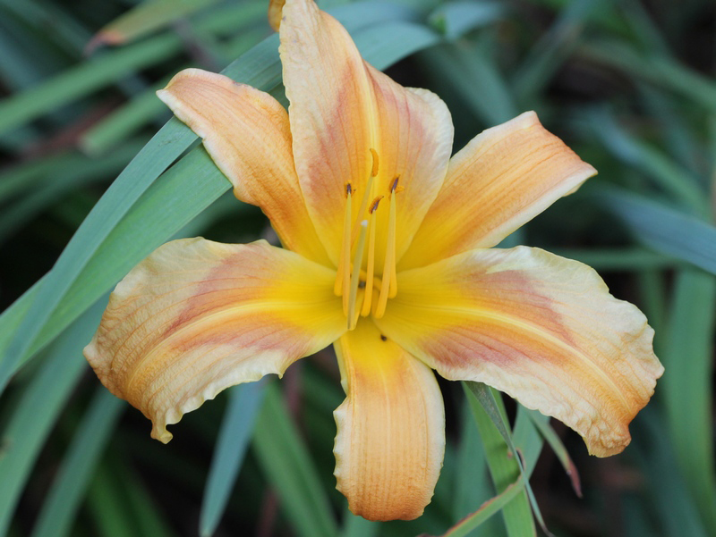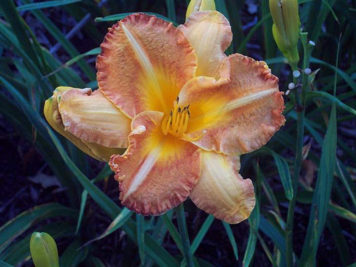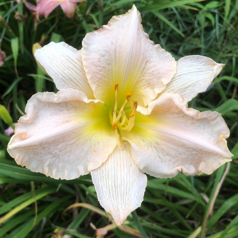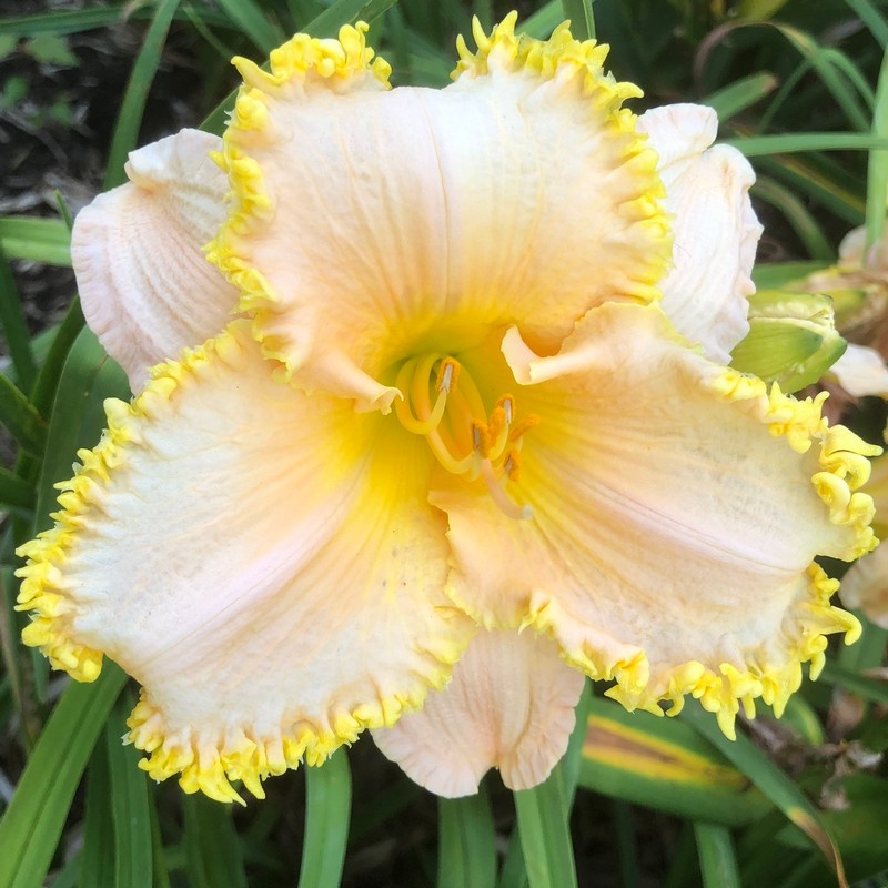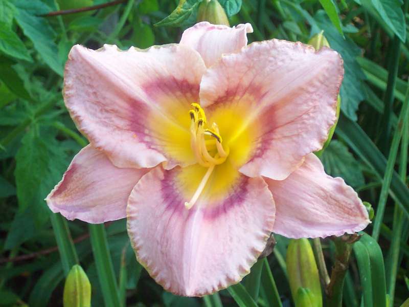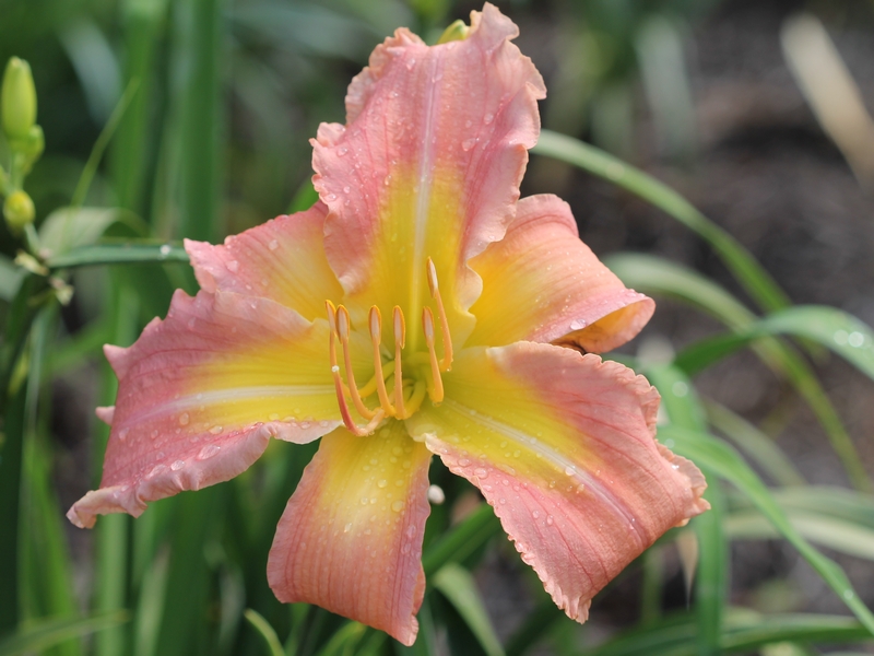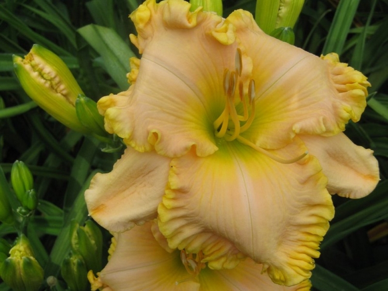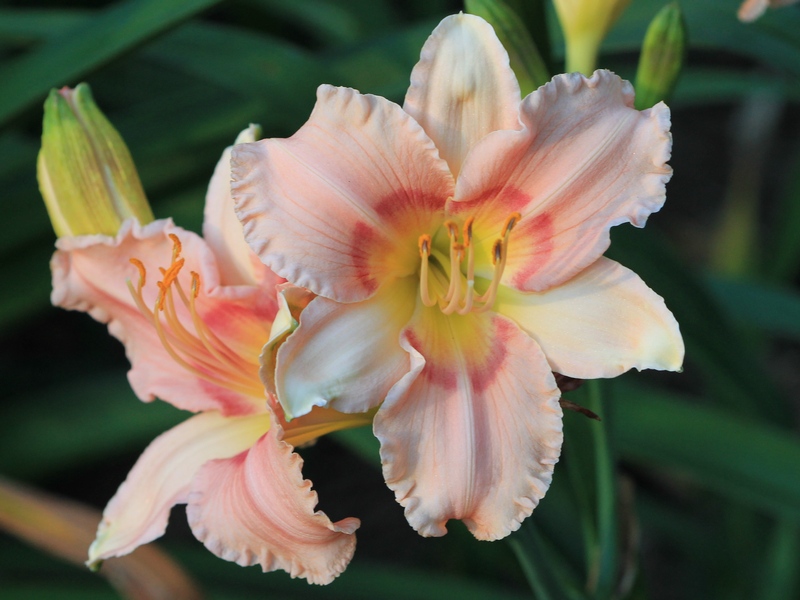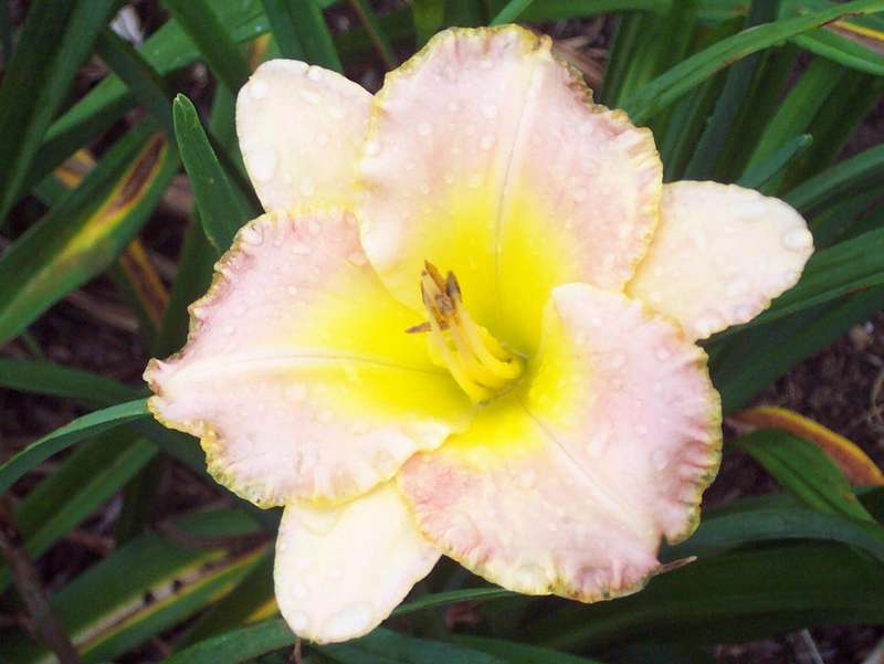Douglas,H 14 - 25" EM 7" DOR DIP Peachy pink cream midribs, yellow green throat |