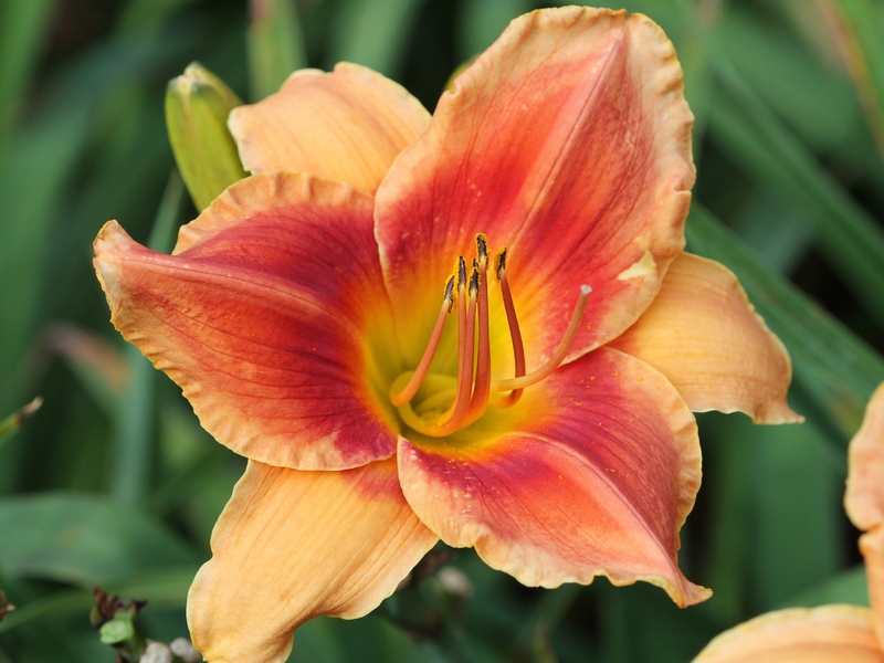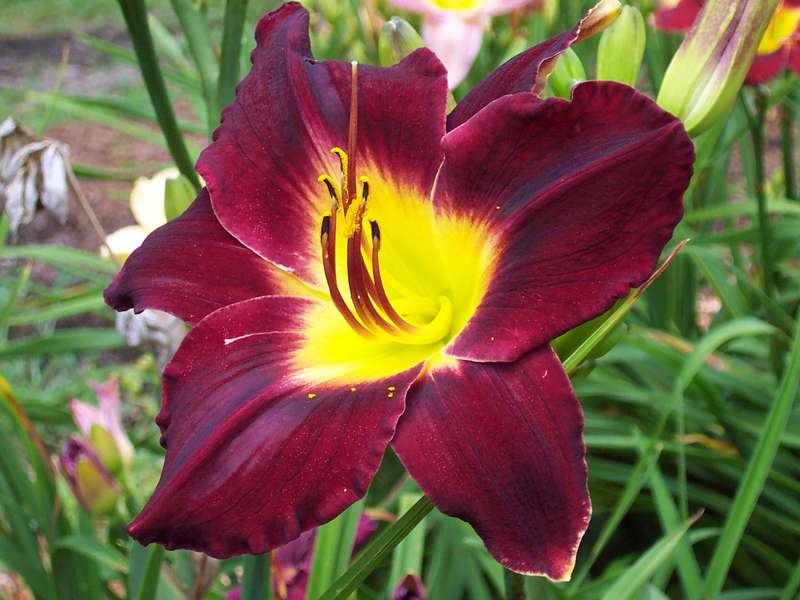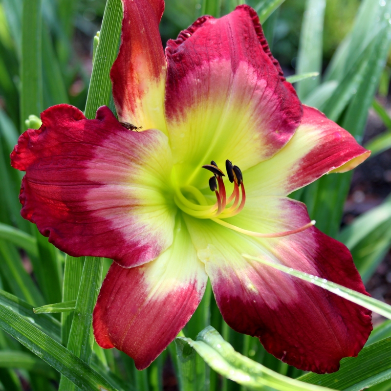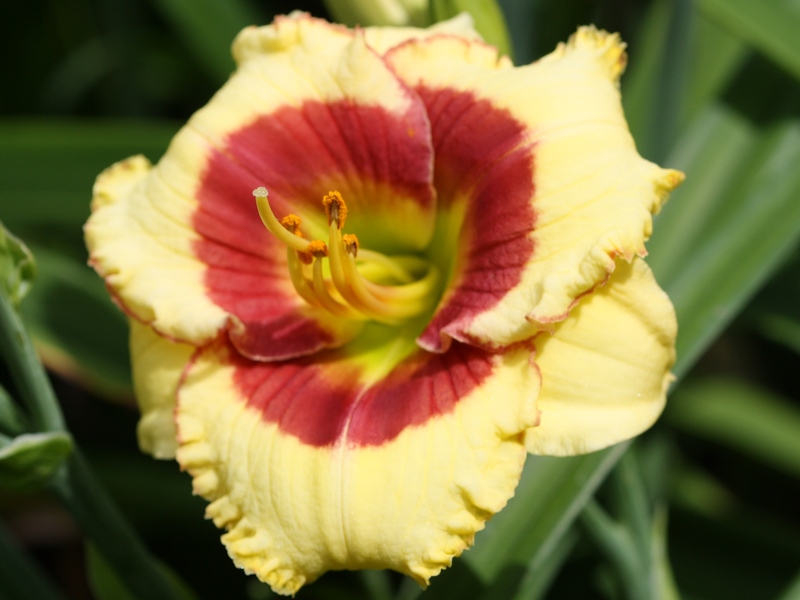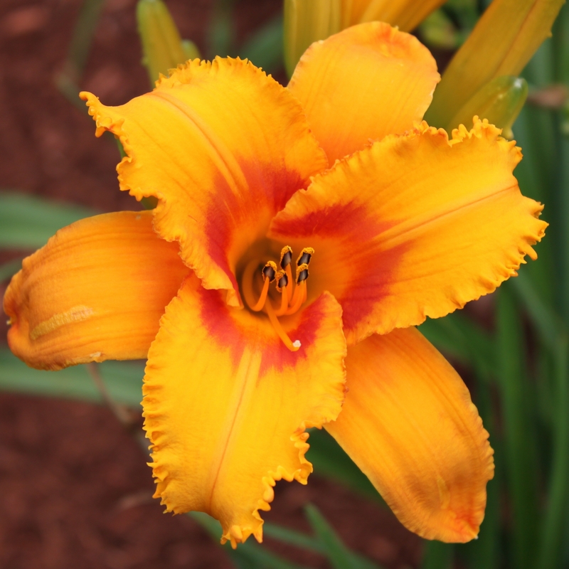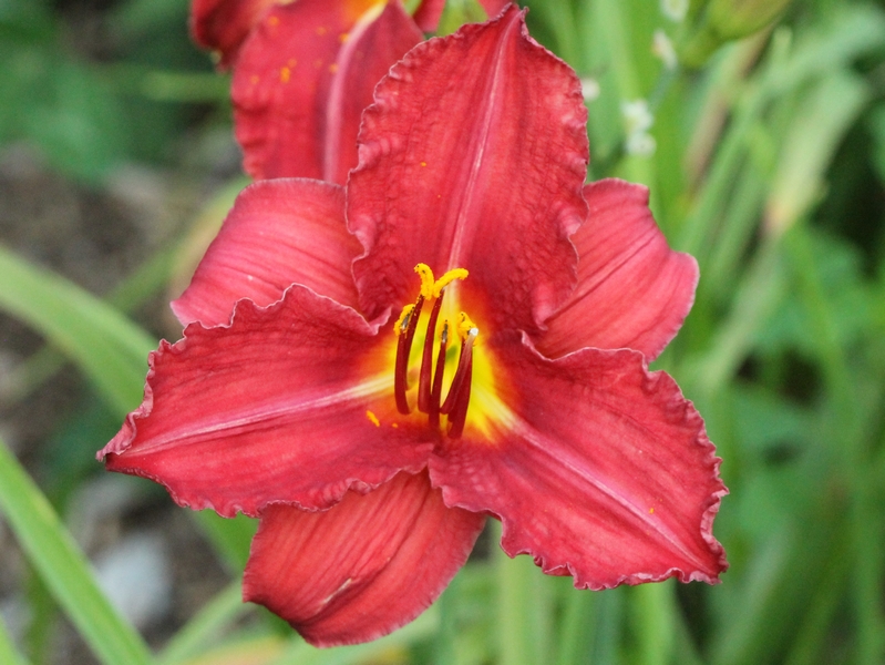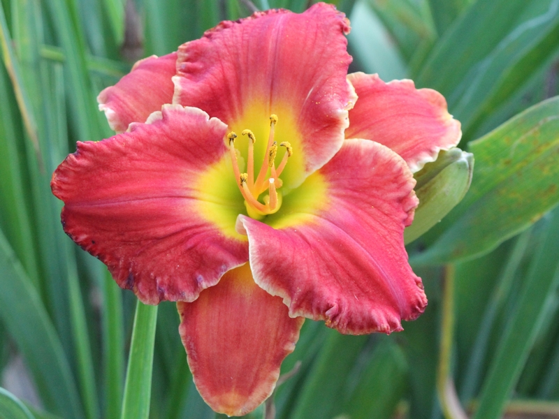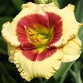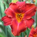 Derrow 18 - 24" EM 4.25" DOR DIP Vermillion red, faint darker red eye, yellow to green throat |