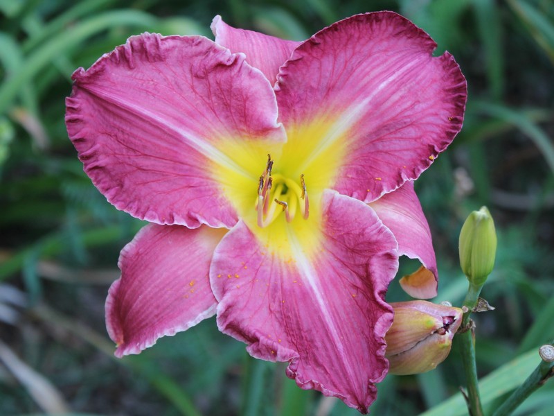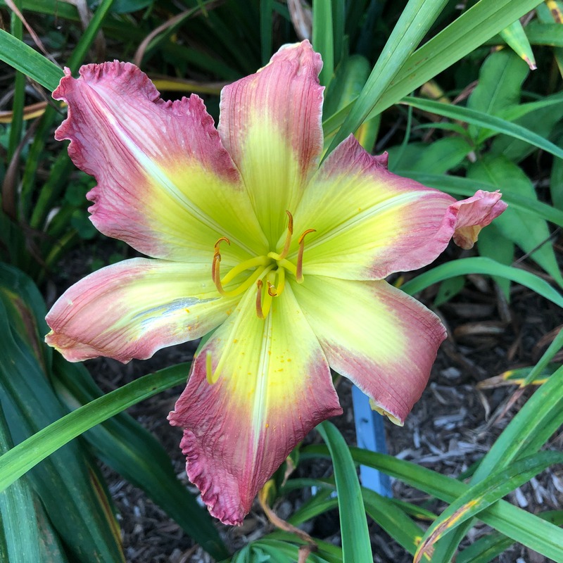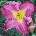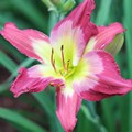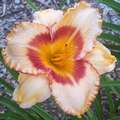 Derrow 22 - 30" M 6" SEV DIP Pink with large, scarlet eye, picotee edge, wide, flat blooms. |