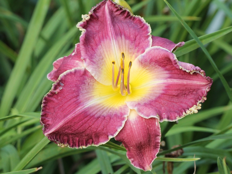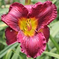 Mussar 16 - 34" EM 8" SEV TET Dark raspberry self w/white to yellow to green throat |