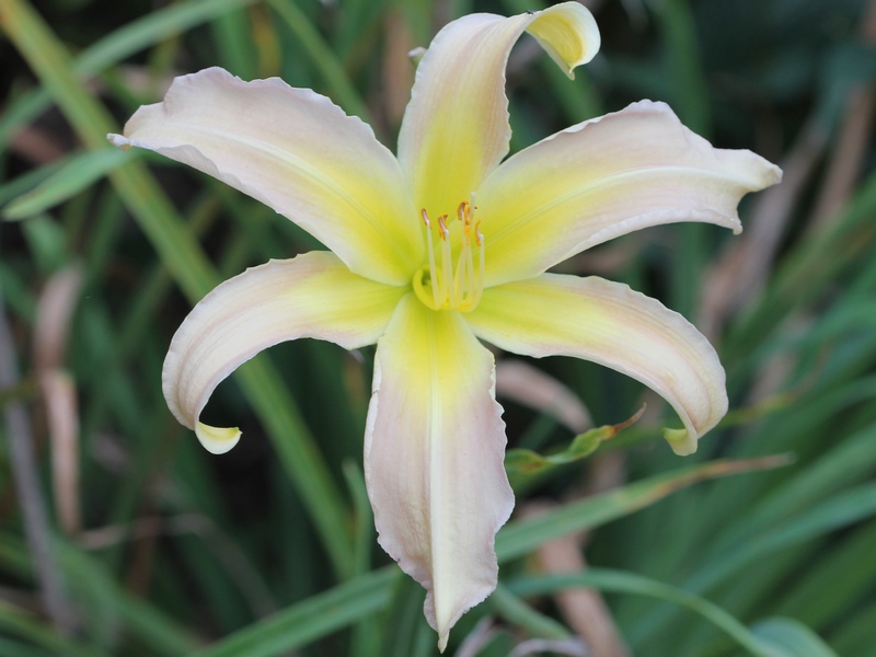 Shooter, E 09 - 28" M 5.5" DOR DIP Creamy lavender with darker halo and white midribs above green heart throat |