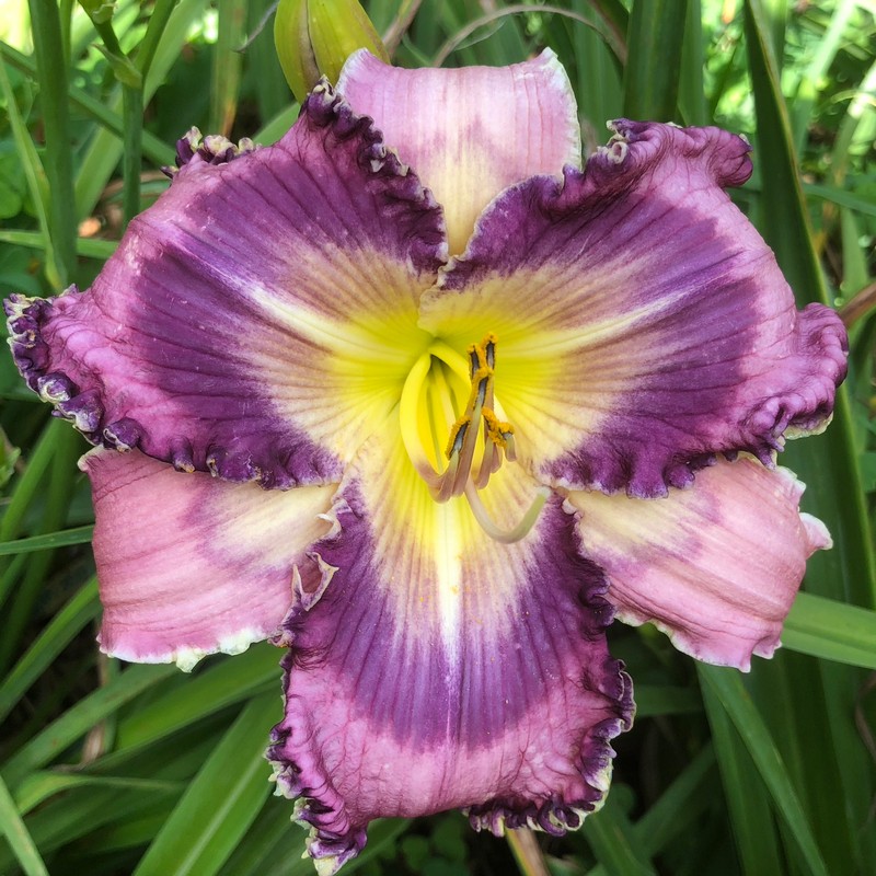 Selman 14 - 30" M 6.5" DOR TET Cream yellow with charcoal, lavender blue and magenta watermark eye, matching picotee edge of magenta, lavender blue and cream yellow |