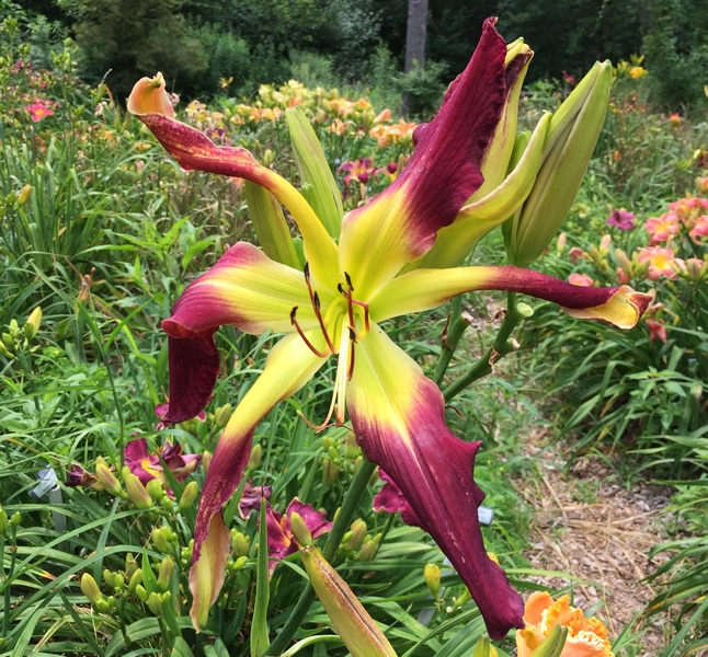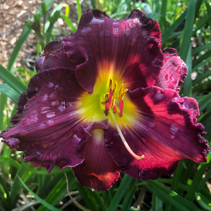 Waldrop 16 - 44" EM 12" SEV TET Burgundy red w/large green throat UF Crispate |