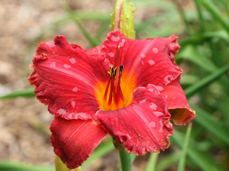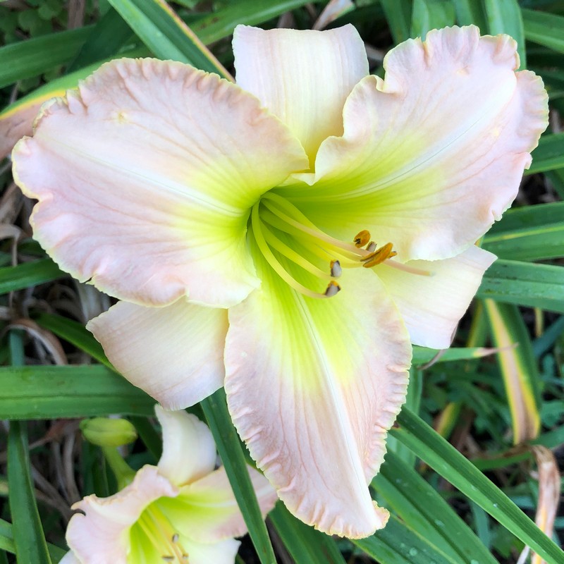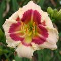 Jones, L 09 - 20" M 3" DOR DIP Pale cream with lg red eye, delicate edge and green throat |
