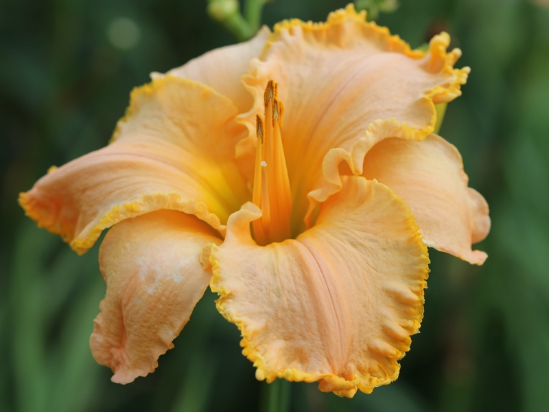 Sobek 14 - 28" E 4.63" DOR DIP Orange with faint purple overlay; throat green deep in heart. Ruffled. NOC |