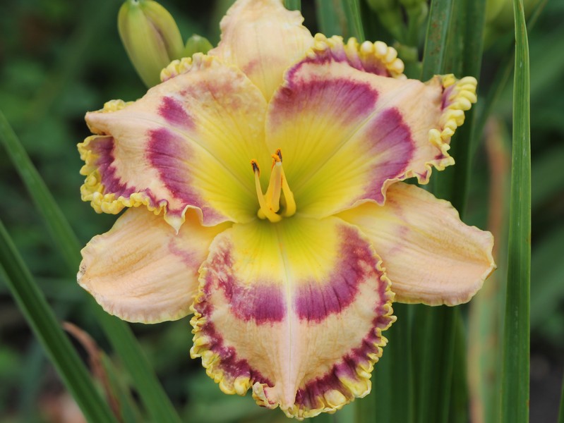 Pierce,G 10 - 32" EM 6" EVR TET Orchid cream base, with orchid purple eye and double edge of orchid purple, outer edge chartreuse green |