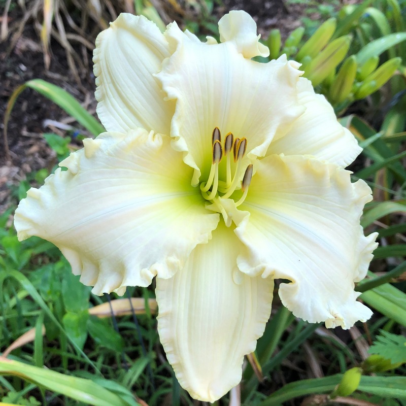 Stelter 16 - 43" M 6.5" EVR TET Slightly ruffled blue violet self with chartreuse green throat | |