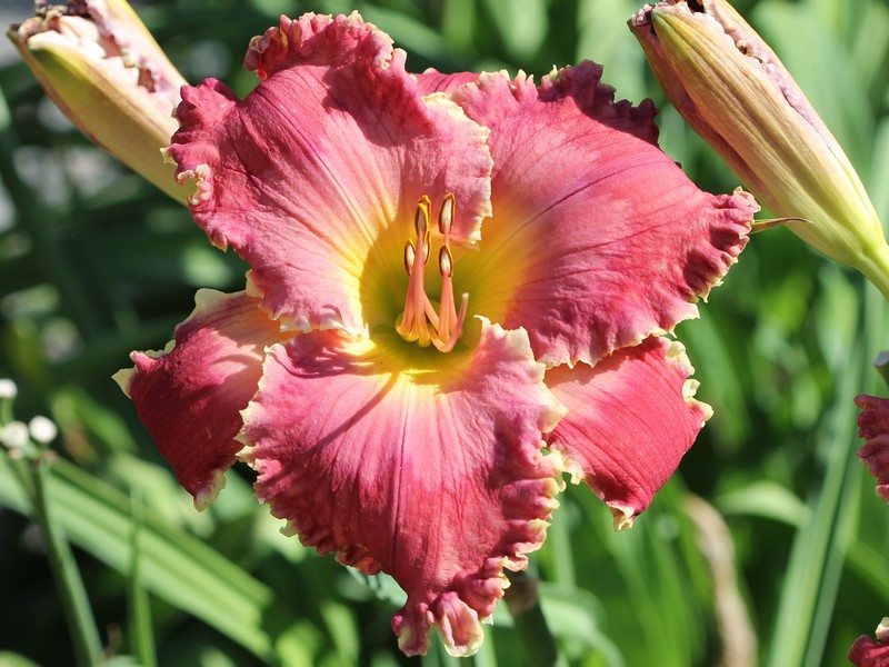 Rice,J 07 - 28" M 6" DOR TET Pink with rose eye and edge above green throat |