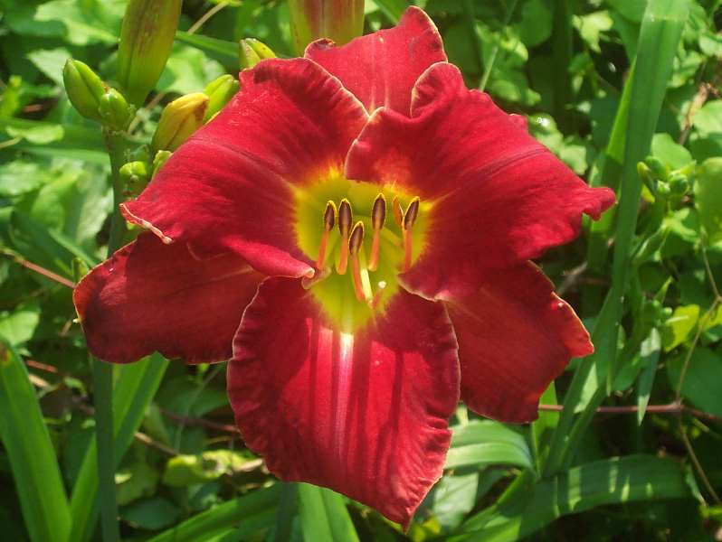Oakes 84 - 30" M 7" DOR TET Bright red self, velvety, green throat, sunfast |