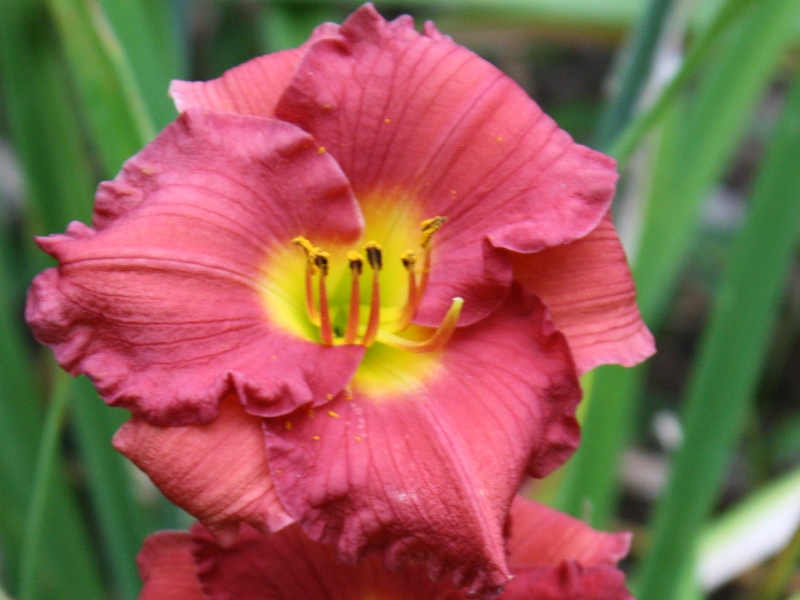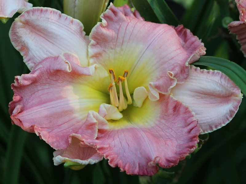 Matzek 12 - 30" M 7" SEV TET Rose pink with a green throat and pinched petal crispate |