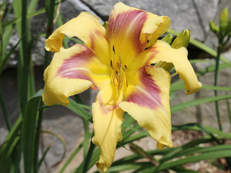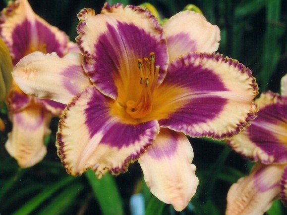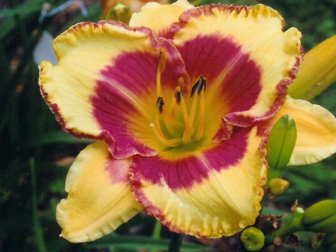 Douglas,C 05 - 24" EM 5.75" DOR TET Light yellow w/plum eye and picotee edge |