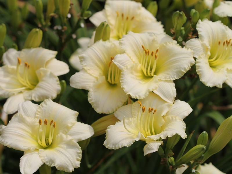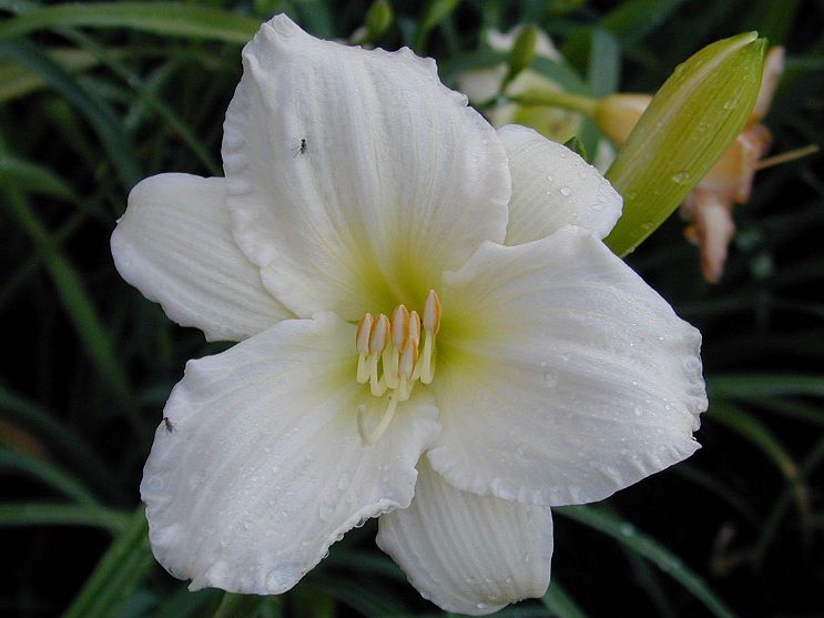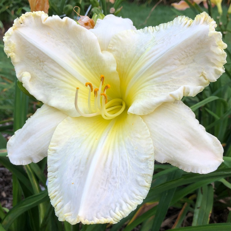 Douglas, H 21 - 36" EM 7.5" DOR DIP White w slightly ruffled, pinched petals small green throat UF Crispate | |