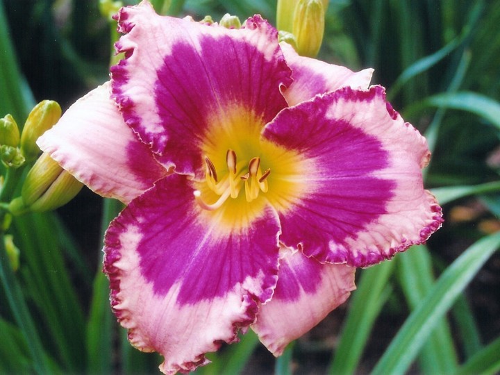 Matzek 09 - 32" M 6" SEV TET Pink w/triangular reddish pink eye and ruffled edge |