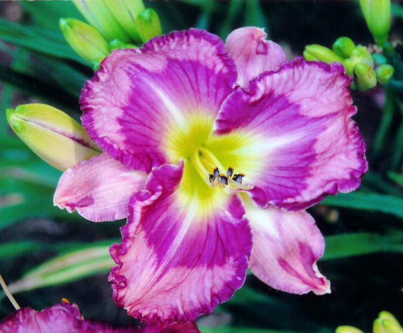 Meadows 2010 - 34" ML 5.5" SEV DIP Light flesh pink with mauve lavender blue eye above a green throat |